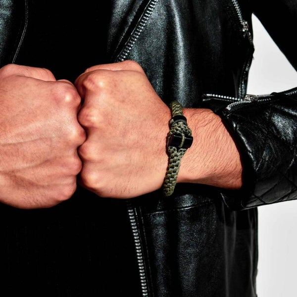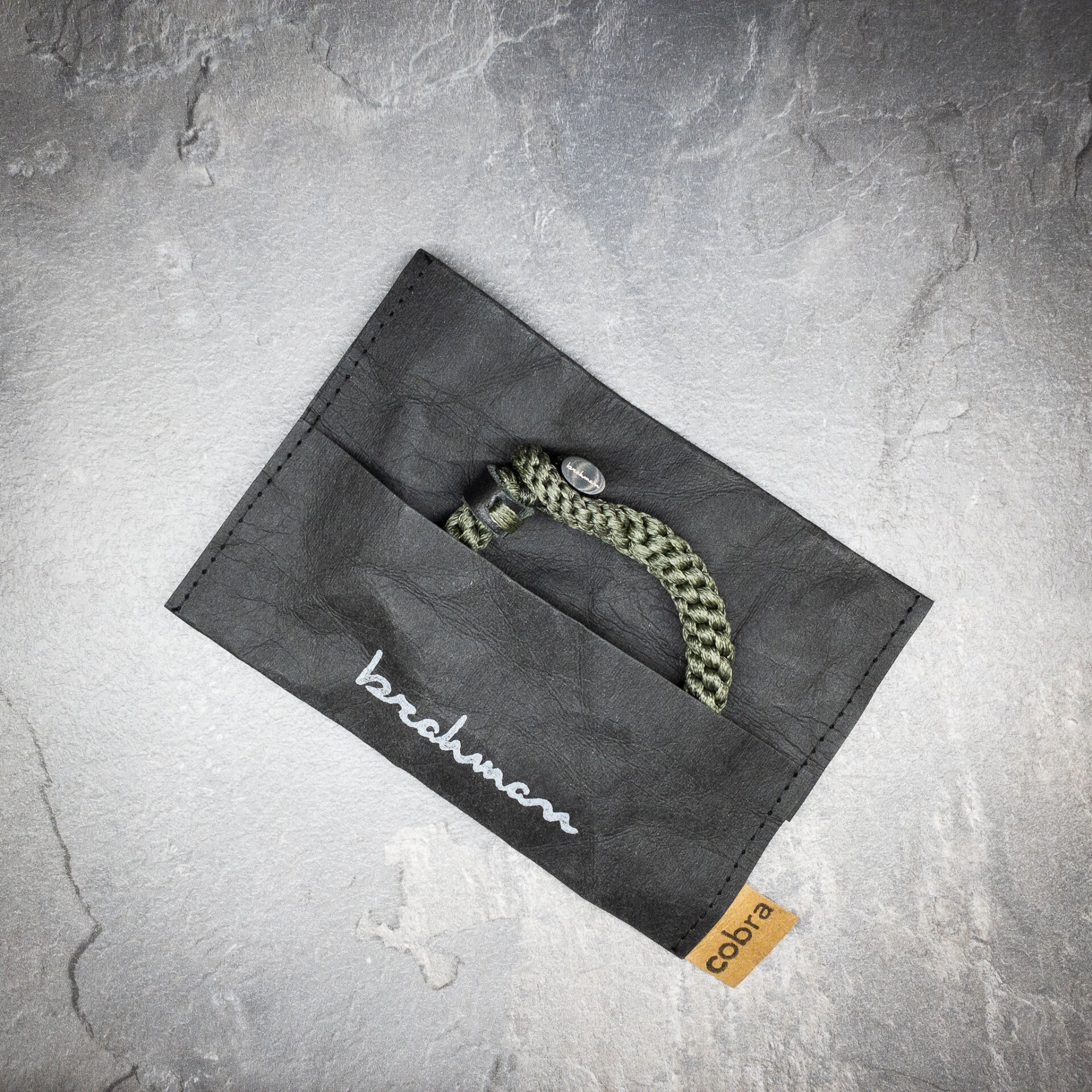 Deze geweldige armband voor zowel mannen als vrouwen is met de hand gevlochten met behulp van een aangepaste techniek die het zijn unieke slangachtige uiterlijk geeft. De Cobra-armband staat symbool voor een “slang die zijn eigen staart opeet”, een oud symbool voor oneindigheid.