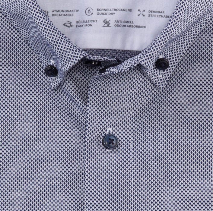 Innovatieve technologie en creatieve herinterpretatie worden weerspiegeld in dit OLYMP Level Five overhemd. De modieuze print, gemaakt op een modernfit pasvorm, zorgt voor eigentijdse performance. De beproefde Dynamic-Flex-jersey is erg fraai door functionele en huidvriendelijke materiaaleigenschappen, het is ademend, elastisch en onderhoudsvriendelijk. Casual als een T-shirt, stijlvol als een zakelijk overhemd.