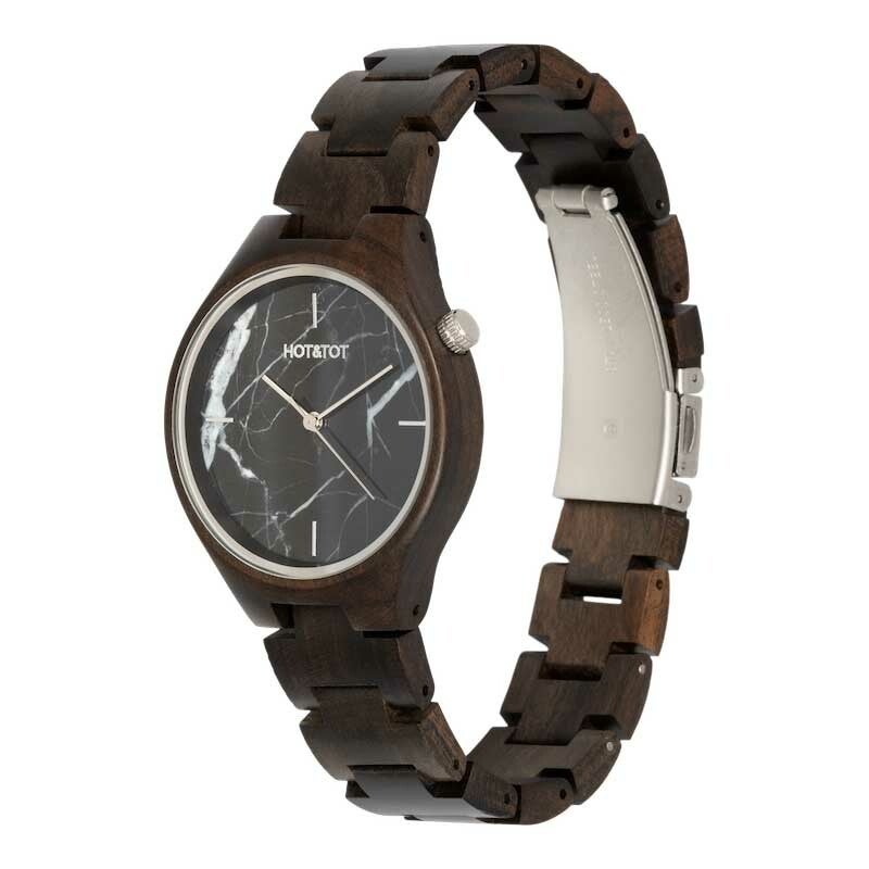 HOUTEN HORLOGE | 40MM | ZWART MARMER | SANDELHOUT