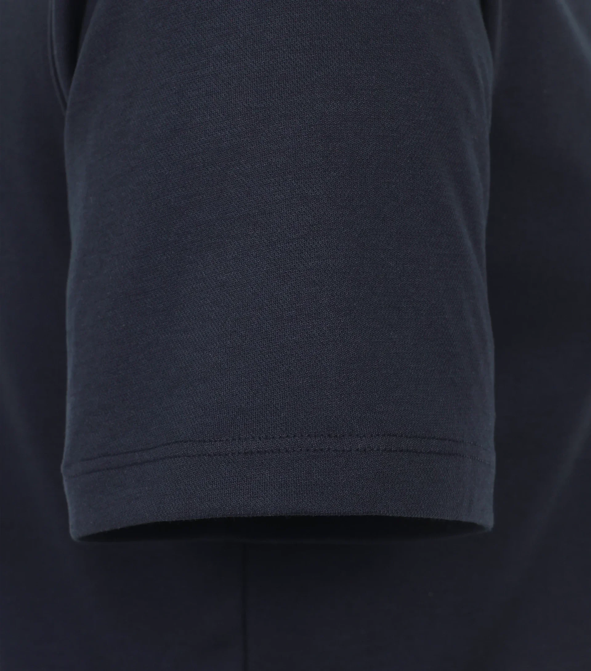 Wanneer je op zoek bent naar een sportieve variant van het klassieke poloshirt, is deze herenpolo van Casa Moda echt iets voor jou. De casual polo heeft een gemêleerd dessin in een navy kleur en is voorzien van een klassieke pique binding. Daarnaast is het herenshirt afgewerkt met drieknoopssluiting, een modieuze weving op de boord met sportieve strepen op de rand.